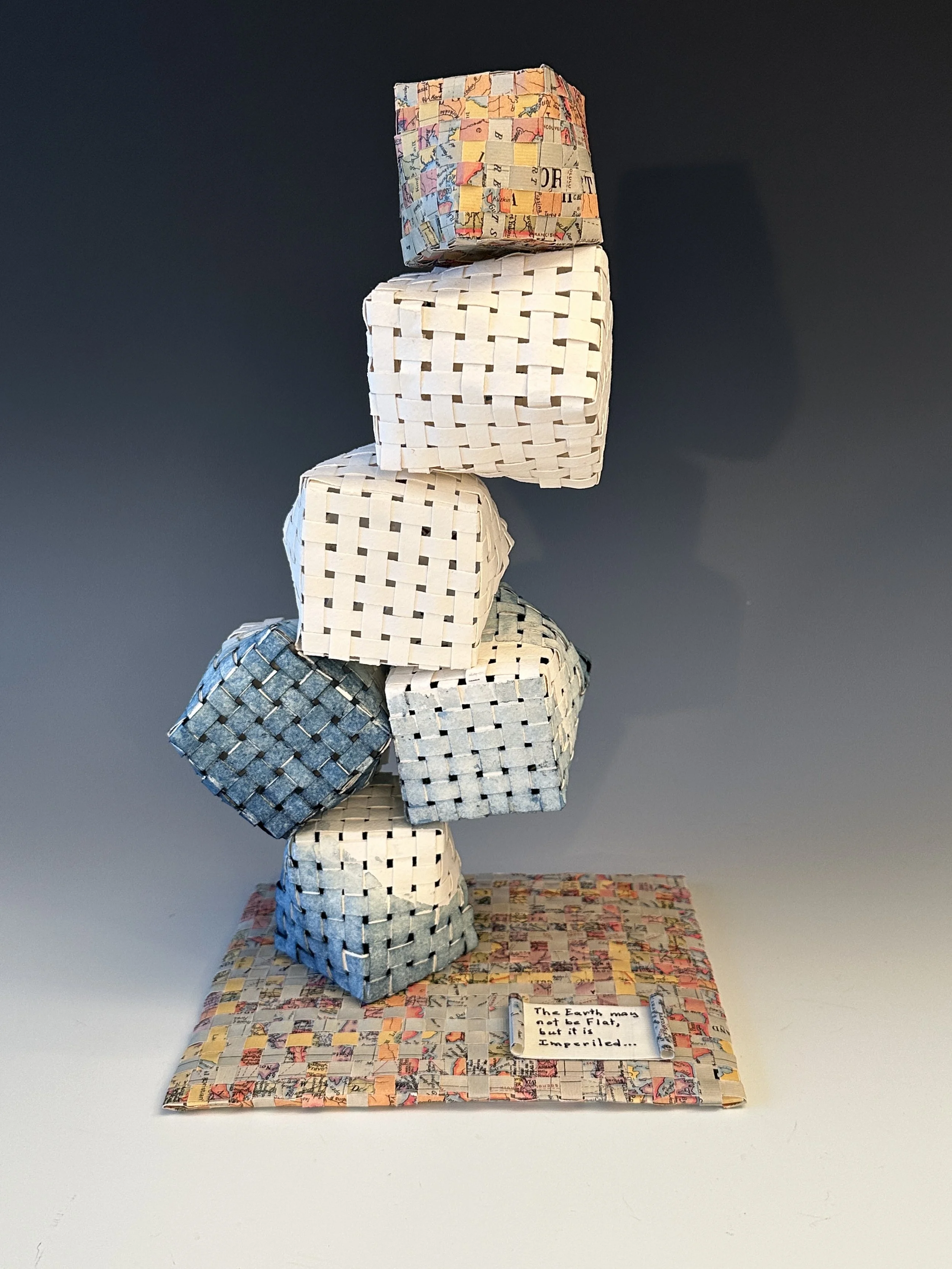 The materials are colored before I start working with the general shape in mind. A restricted color pallet has been one of most stimulating aspects of my coiled baskets. Coiling is time consuming and encourages a meditation on form. Plaiting is faster and allows me to modify the form as I work. Color and texture play a bigger role in my plaited baskets